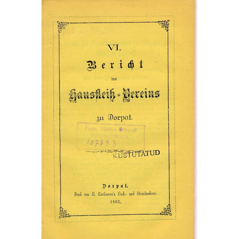 Report of the Hausfleiss-Verein zu Dorpat about the schoolyear 1882/83.
