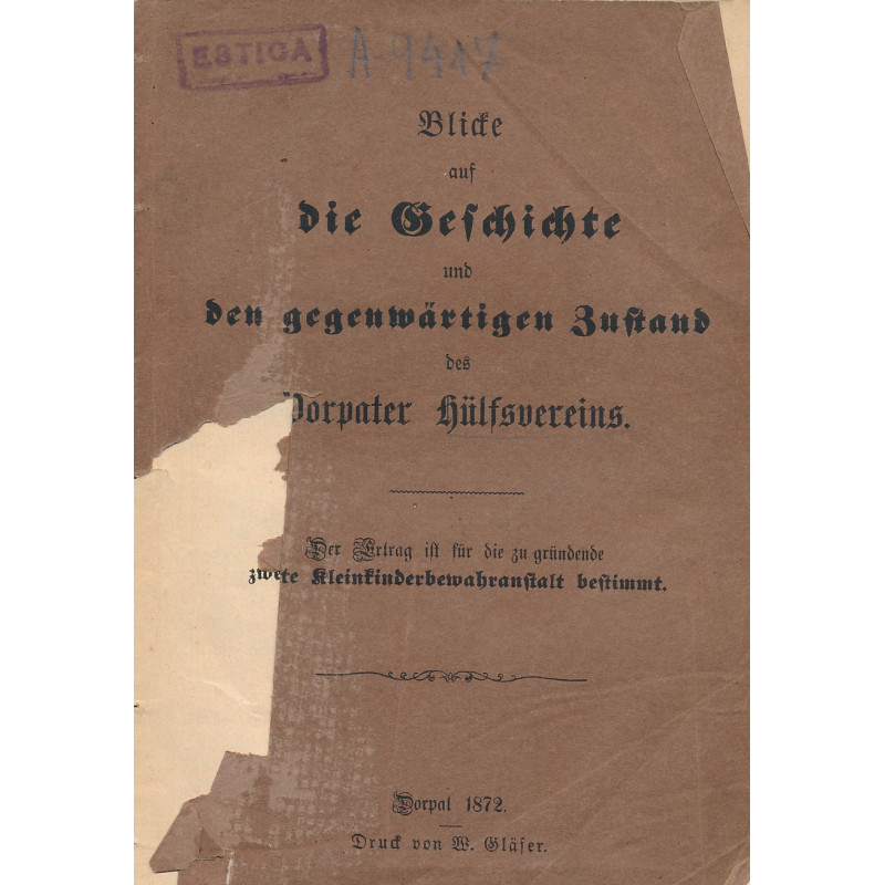 Note on title page: Der Ertrag ist für die zu gründende zweite Kleinkinderbewahranstalt bestimmt