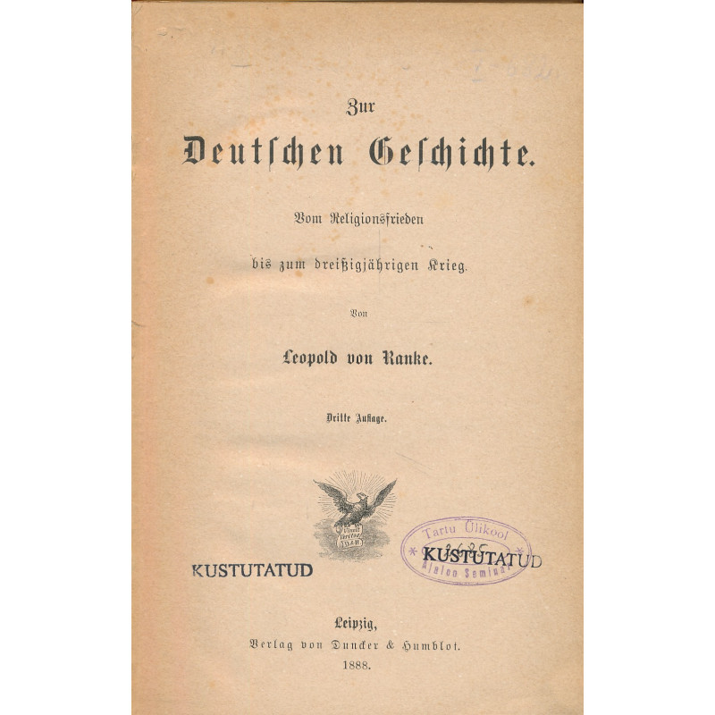 History of Germany from the Peace of Augsburg to the Thirty years war, written by Leopold von Ranke, the founder of historism.
