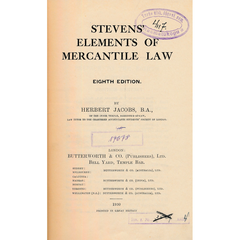 Steven's Elements of Mercantile Law" is a book that focuses on the principles and practices of mercantile (commercial) law. Mercantile law covers legal issues related to businesses, commercial transactions, and trade activities. Written by Herbert B. A. Jacobs and first published in 1934, the book provides an overview of topics such as contracts, sale and purchase agreements, agency, business organizations, banking, insurance, and other areas relevant to commerce and trade law. Aimed primarily at law students, practitioners, and business professionals, the book offers both theoretical and practical insights into commercial law as understood in the early 20th century. Although its content may now be outdated compared to modern legal texts, it provides a historical perspective on the fundamentals of mercantile law during that period.