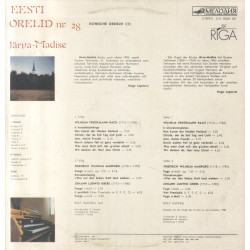 Volume 28 in the "Organs of Estonia" series is devoted to the Järva-Madise church organ, with Rolf Uusväli performing the music of Wilhelm Friedemann Bach, Marpurg, and Krebs.