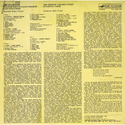 1984 and 1987 recordings of the Moscow Conservatoire Students' Choir, conducted by Boris Tevlin.