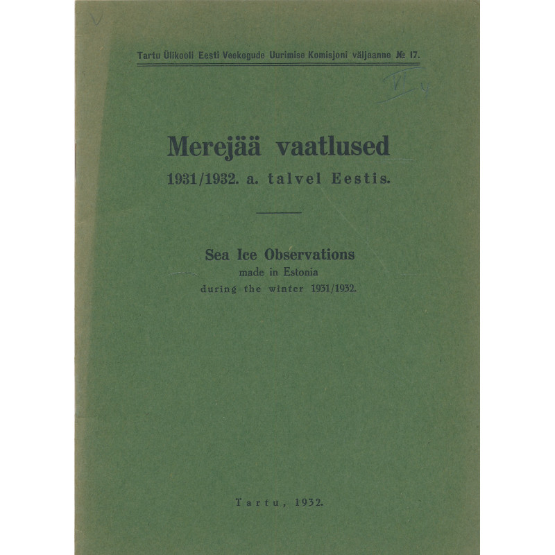Tartu Ülikooli Eesti veekogude uurimise komisjoni väljaanne ; nr. 17