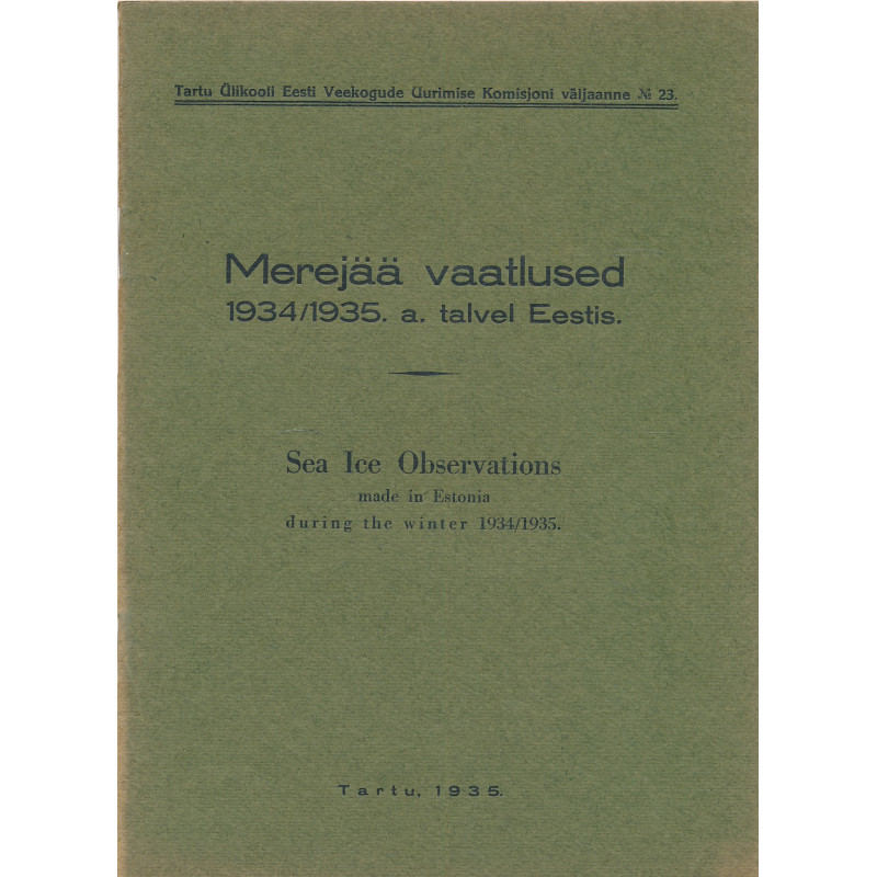 Tartu Ülikooli Eesti veekogude uurimise komisjoni väljaanne ; nr. 23