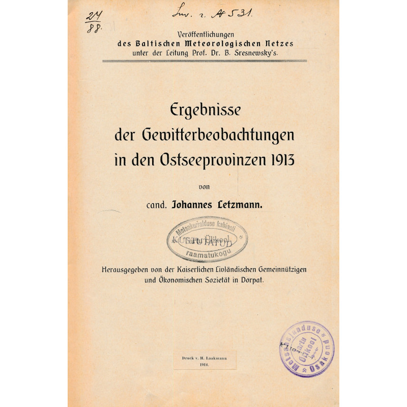 Results of thunderstorm observations in the Baltic provinces in 1913.