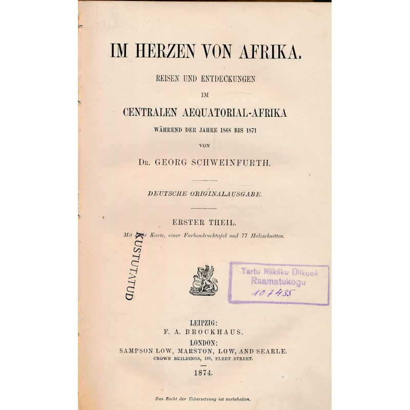 Riias sündinud baltisaksa botaaniku ja etnoloogi Georg Schweinfurthi reisikirjad 19. sajandi 2. poole Kesk-Aafrika rahvastest ja olustikust.