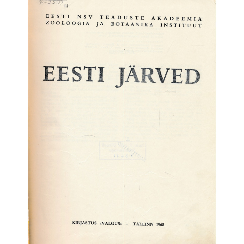 Käesolev monograafia kujutab endast teaduslikku käsiraamatut 150 tähtsama Eesti NSV järve (välja arvatud Peipsi ja Võrtsjärv) kohta.