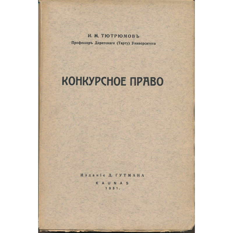 И. М. Тютрюмов teos „Конкурсное право“ käsitleb pankroti- ja maksejõuetusõiguse põhimõtteid, keskendudes võlausaldajate nõuete esitamisele ja rahuldamisele. Raamat annab ülevaate pankrotimenetluse õiguslikust korraldusest Vene keisririigi õigussüsteemis.